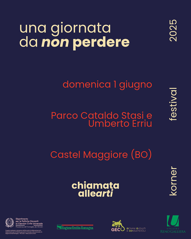 L'iniziativa prevede una giornata di tornei, laboratori artistici, musica e intrattenimento nel parco Cataldo Stasi e Umberto Erriu in via Lirone 44 a Castel Maggiore, evento ideato promosso e organizzato dal gruppo giovanile 'Giovani Fuoriclasse', che della propria iniziativa dice: “Chiamata alle Arti - Korner Festival” è un festival progettato per promuovere l'aggregazione giovanile e la cultura attraverso un mix di eventi sportivi e artistici... abbiamo identificato un bisogno reale nel territorio di Castel Maggiore: la necessità urgente di spazi di aggregazione fisici e relazionali, particolarmente evidente dopo il periodo di isolamento sociale dovuto alla pandemia da Covid-19. Questi spazi sono fondamentali per ricostruire i legami comunitari e offrire opportunità di incontro e dialogo tra i giovani.... Questo festival non è solo un momento di aggregazione, ma una piattaforma per esplorare e celebrare la diversità culturale e l'importanza del lavoro di squadra, rafforzando il legame tra i giovani e il territorio.