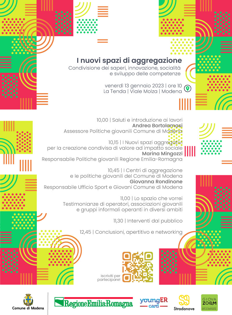 I nuovi spazi di aggregazione giovanile: a Modena il 13 gennaio per una condivisione dei saperi