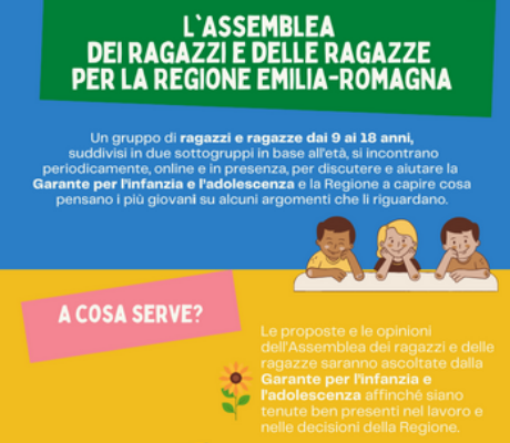 In Emilia-Romagna nascerà l’Assemblea dei ragazzi e delle ragazze, composta esclusivamente da giovanissimi (fino a 18 anni), che collaborerà direttamente all’attività dell’ufficio della Garante regionale per l’infanzia e l’adolescenza supportando l’Assemblea legislativa regionale.
