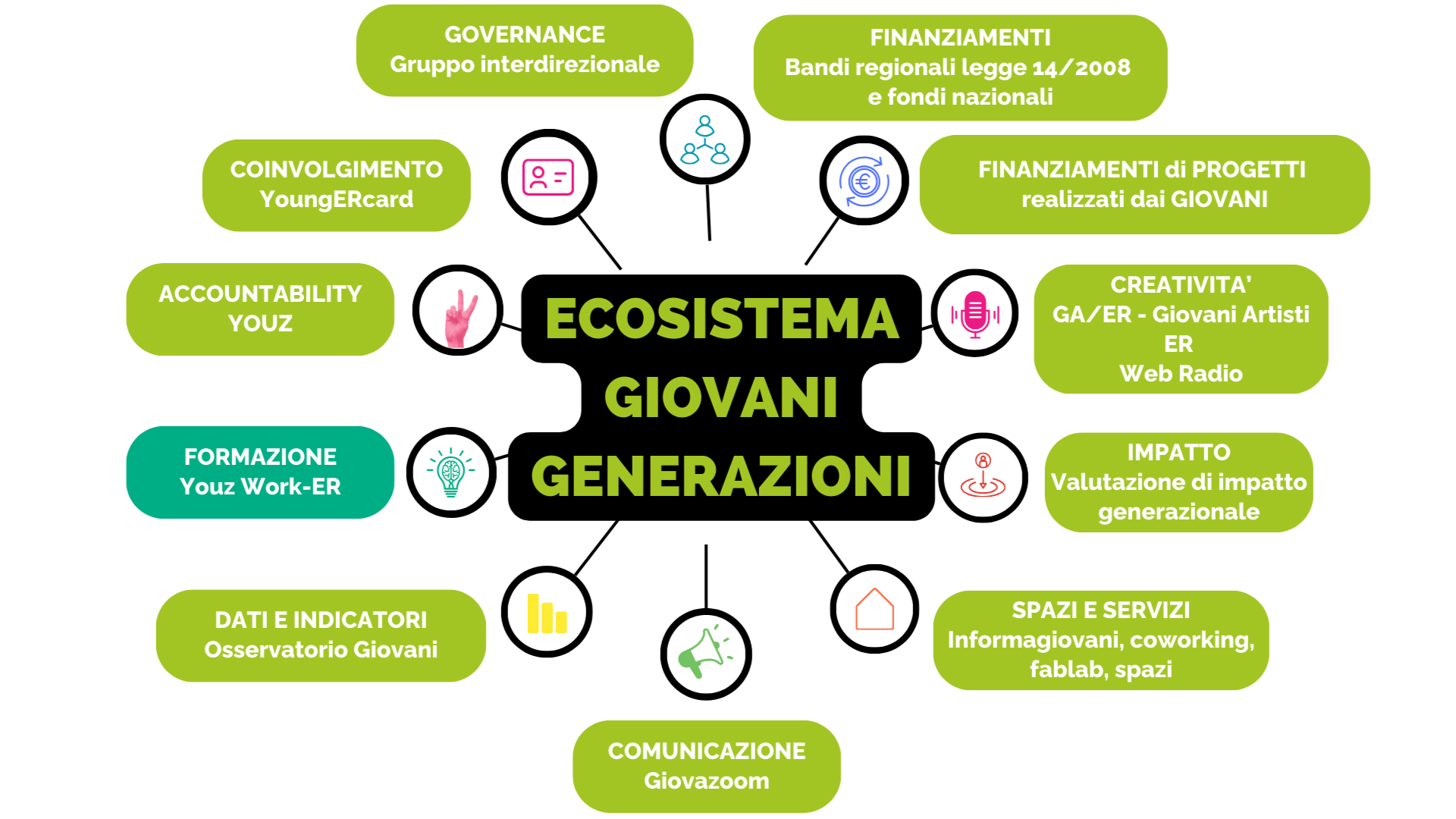 Youz Work-ER è una delle iniziative parte dell'Ecosistema Giovani Generazioni delle Politiche Giovanili: