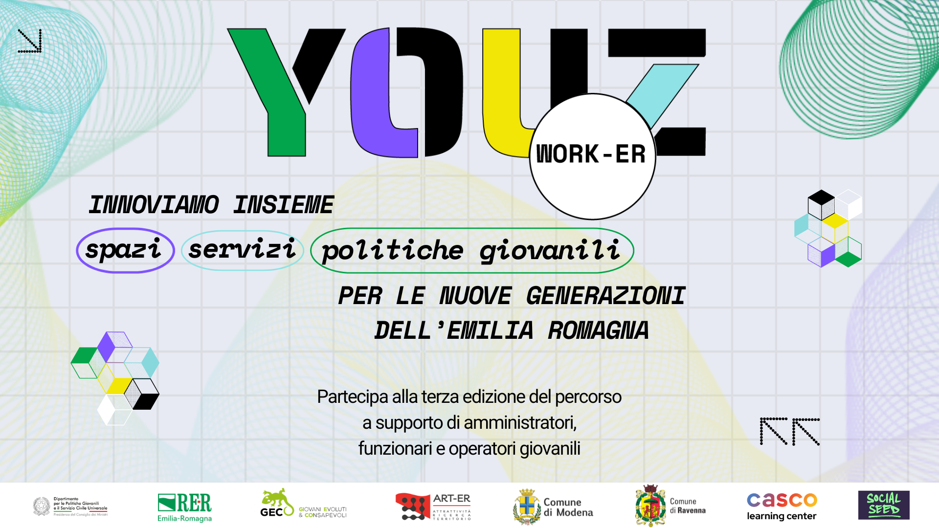 Youz Work-ER, realizzato grazie al Fondo Nazionale Politiche Giovanili GECO (Giovani Evoluti e Consapevoli), è un percorso formativo promosso dalle Politiche Giovanili della Regione Emilia-Romagna realizzato con il supporto di ART-ER in collaborazione con il Comune di Modena per accompagnare amministratori, funzionari e operatori giovanili del territorio regionale nell'intento di: