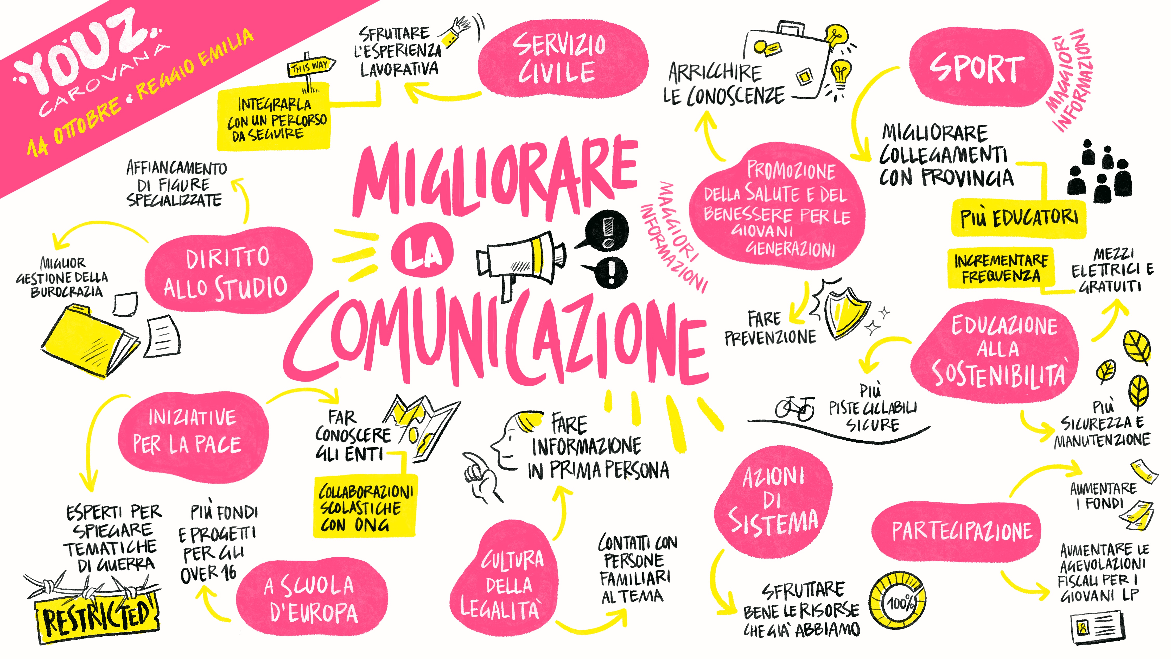 Successo anche per la tappa del 14 ottobre della Carovana YOUZ. A Reggio Emilia, all’interno dello spazio dedicato alla formazione di linguaggi espressivi e produzione creativa degli under35, SD Factory Lab, erano presenti oltre 60 giovani cittadinə per parlare di una Regione FairER.