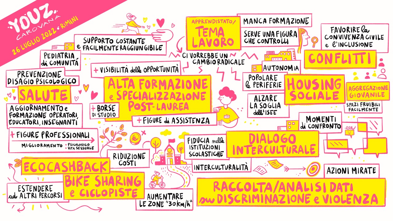 Riflettori puntati sull’inclusività senza dimenticare un altro dei macro valori del progetto, e in generale delle Generazioni Y e Z, ovvero l’aspetto ambientale. La Carovana Youz ha continuato il suo viaggio per un’ultima fermata prima dello stop estivo di agosto. E lo ha fatto portandosi dietro un grande bagaglio di esperienza, forte di una serie di azioni proposte durante i mesi dalla Regione, in risposta ai bisogni emersi dal percorso del 2021.