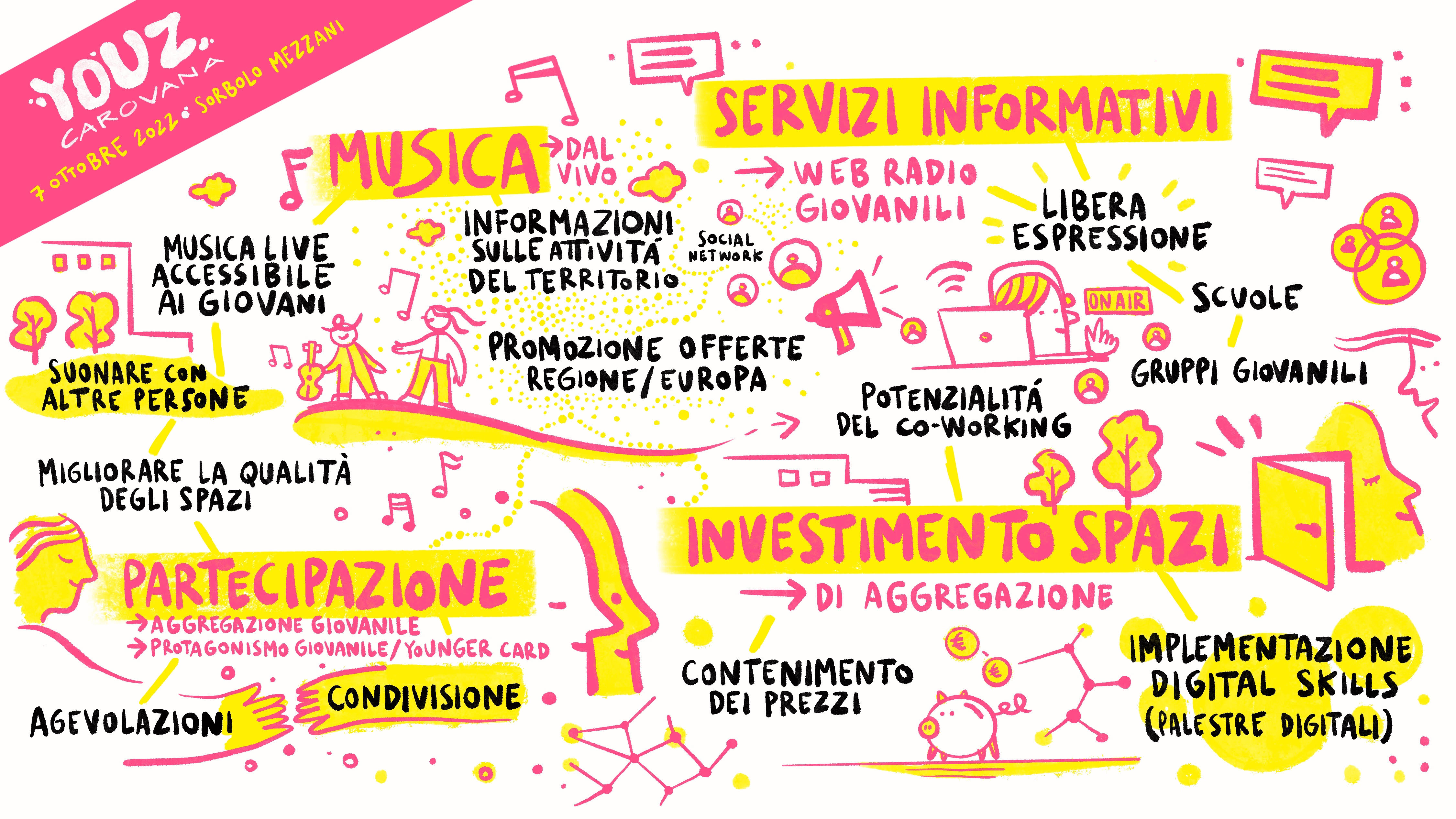 Tra gli argomenti trattati le pari opportunità in ambito lavorativo, l’accessibilità ai servizi per i giovani e l’innovazione. Ma anche il protagonismo giovanile, la cittadinanza attiva, gli spazi di aggregazione e di cultura. Grande protagonista la musica, da vivere come attività di divertimento e svago, ma anche come occasione e momento di aggregazione. Un aspetto importante per il territorio, tanto che la giornata si è conclusa all’attrezzatissimo centro giovani locale, dove i ragazzə hanno a disposizione strumenti musicali e un’intera sala prove.