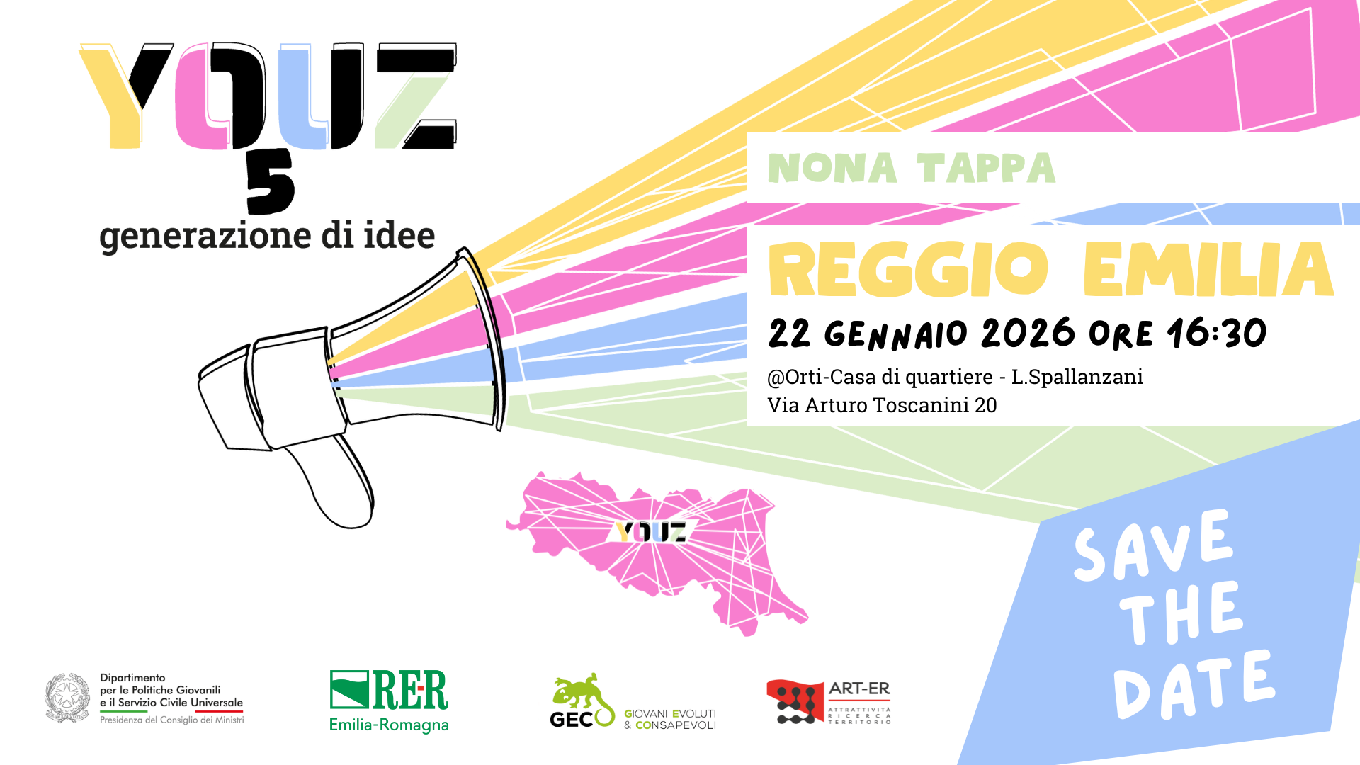 FORUM YOUZ è organizzato dalla Regione Emilia-Romagna con il supporto di ART-ER. Settima tappa della quinta edizione di YOUZ. Sarà un’occasione per condividere idee, esperienze e proposte su come migliorare le politiche giovanili e costruire insieme un futuro più giusto, sostenibile e vicino ai bisogni delle nuove generazioni. L’iniziativa è volta in particolare a valorizzare l’ecosistema regionale rivolto alle giovani generazioni che attraverso una variegata serie di azioni coinvolge direttamente i giovani e chi lavora per loro e con loro in ottica di supporto, orientamento ed empowerment.