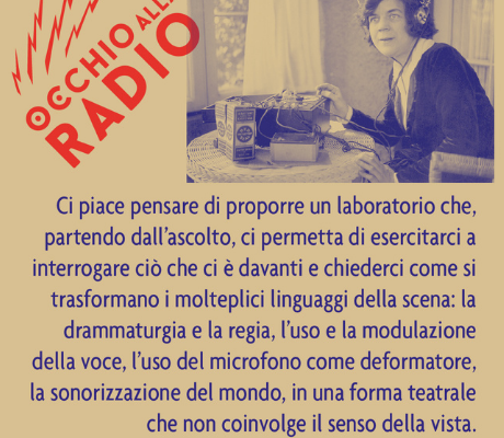 Il laboratorio Occhio alla radio è gratuito e aperto a tutti e a tutte. L’attività partirà dall'ascolto di spezzoni e brani tratti da radiodrammi e poi, attraverso un percorso di analisi, si andranno a intervistare quegli artisti, operatori e studiosi che proprio sulla voce e sul radiodramma nella sua veste più contemporanea si sono interrogati.