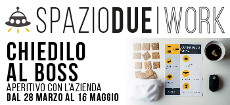 “Chiedilo al boss - aperitivo con l’azienda” è una iniziativa di Spazio2 che parte martedì 28 marzo per arrivare fino al 16 maggio con 5 appuntamenti, sempre di martedì e sempre alle 18.30. Chiacchere in libertà con 5 protagonisti del lavoro e della creatività Giovanile, con aperitivo offerto.