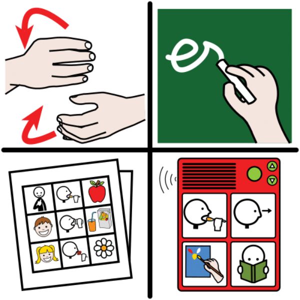 I sistemi di Comunicazione Aumentativa e Alternativa (CAA) non sono incompatibili, ma complementari alla riabilitazione del linguaggio naturale, in quanto possono favorire la sua acquisizione ogni volta che ciò è possibile. La Comunicazione Aumentativa e Alternativa include diversi sistemi di simboli, sia grafici (immagini, disegni, pittogrammi, parole o lettere) sia gestuali (mimica, gesti o segni manuali) e, nel primo caso, richiede anche l'uso di prodotti di supporto. I diversi sistemi di simboli si adattano alle specifiche esigenze di persone con età e competenze motorie, cognitive e linguistiche diverse. I sistemi di supporto e i prodotti per CAA sono solo un mezzo o una condizione necessaria per la persona con disturbo del linguaggio espressivo per essere in grado di comunicare, sviluppare le sue capacità e partecipare al mondo che lo circonda. Ciò che è veramente importante è il processo di istruzione, di emancipazione e di valutazione che dovrebbe accompagnarla.